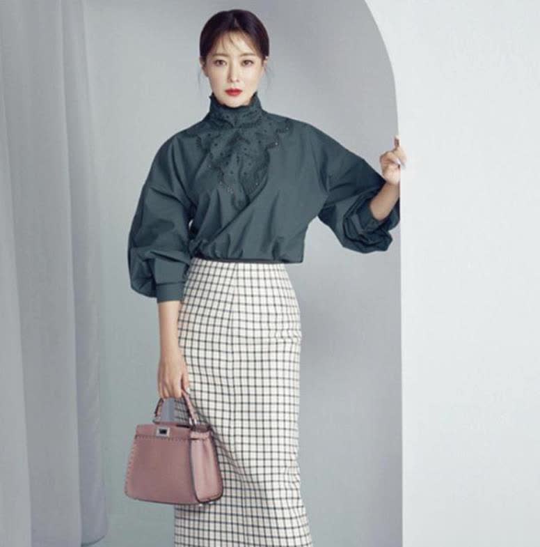 年过五十的金喜善,每次亮相都令人眼前一亮。在活动中,她身着衬衫搭配格纹裙的造型,再次带火了一种低调奢华的贵妇穿搭风格,简约大气且韵味十足,气质更是焕然一新,美得让人难以移开视线。在这组活动造型里,金喜善用一件墨绿色高领衬衫搭配黑白格纹半身裙,将“贵妇感”展现得恰到好处,整个人看上去温婉又显贵。